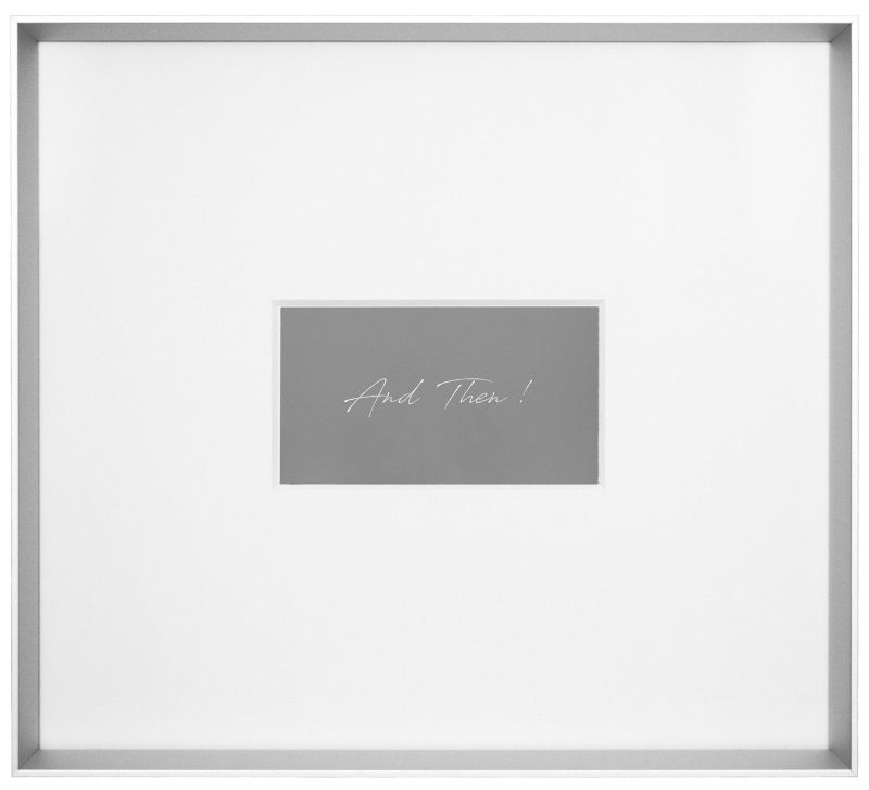 AND THEN ! est une série de cinq photographies qui se situe entre l'Action, la Photographie et la Vidéo. Elle émerge du constat d'une régression en cours dans la considération des femmes en tant qu'individus libres des formes d'oppression liées à son sexe (culturel, religieux, social, etc.), qui se diffuse dans la société par un retour à l'ordre moral et par la minoration, la banalisation jusqu'à l'ignorance délibérée des atteintes faites aux droits des femmes. Dans ce travail, le geste est au centre de l'attention du point de vue de son action, celle de (se) masquer, et de sa résultante, d'une impossibilité de communication à la déshumanisation. AND THEN ! tend à interroger le spectateur sur sa propre conscience d'une réalité effective et à l'amener à se positionner.