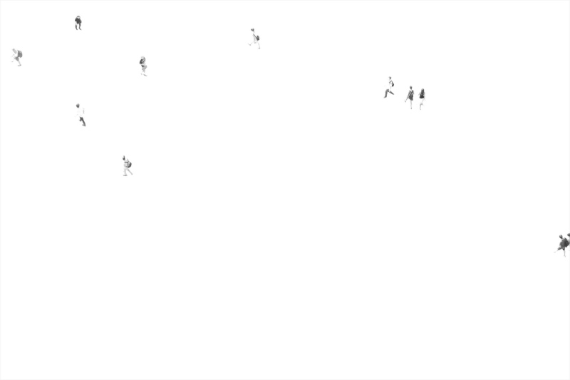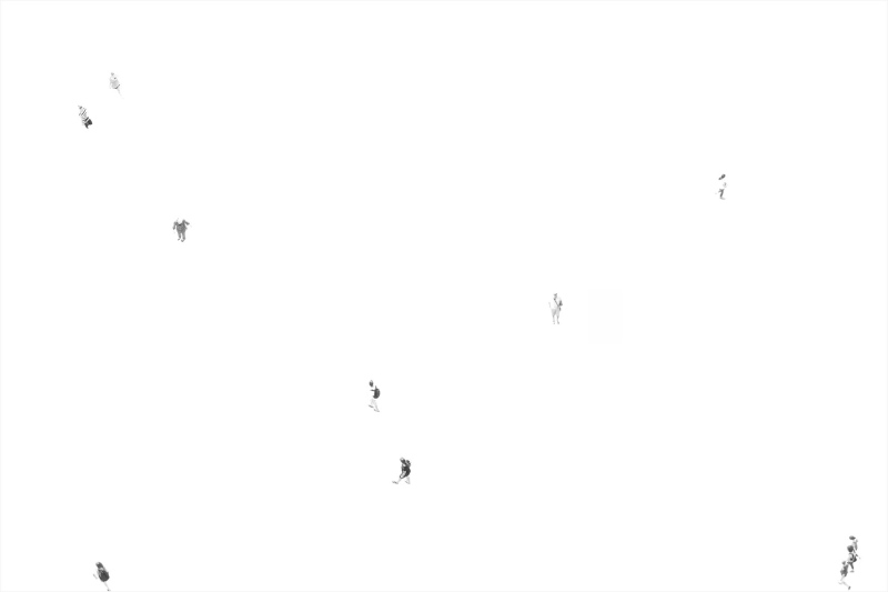 COMPOSINGS (2010/--) is a protean project exploring the urban space through the presence and the mobility of bodies in a delimited time. Begun in 2010, it is still conducted, in all its successive versions, by the same artistic protocol, via the photographic medium. This protocol combines a process of extraction of bodies by refraction of light, at the zenith of the sun and with time scales defined by the type of flows of bodies, with a process of accumulation of bodies by the plurality of my shots and the process of superposition of images. From this protocol, I compose with the co-presence in order to (re)construct spaces in a relation of inscription / revelation, also understood as time manipulation. The issue of COMPOSINGS is situated on a political and social level when I question the contemporary organization of our spaces that the search of a bodies traffic fluidity influences, when my photographic point of view, from the top and directed toward the ground, echoes the point of view of certain surveillance tools which record, with the image, our reality, when I create and exploit data in their signs function. From another angle, artistic and sensitive, COMPOSINGS offers new modes of space perception and understanding.