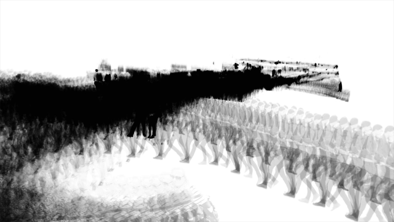 COMPOSINGS (2010/--) is a protean project exploring the urban space through the presence and the mobility of bodies in a delimited time. Begun in 2010, it is still conducted, in all its successive versions, by the same artistic protocol, via the photographic medium. This protocol combines a process of extraction of bodies by refraction of light, at the zenith of the sun and with time scales defined by the type of flows of bodies, with a process of accumulation of bodies by the plurality of my shots and the process of superposition of images. From this protocol, I compose with the co-presence in order to (re)construct spaces in a relation of inscription / revelation, also understood as time manipulation. The issue of COMPOSINGS is situated on a political and social level when I question the contemporary organization of our spaces that the search of a bodies traffic fluidity influences, when my photographic point of view, from the top and directed toward the ground, echoes the point of view of certain surveillance tools which record, with the image, our reality, when I create and exploit data in their signs function. From another angle, artistic and sensitive, COMPOSINGS offers new modes of space perception and understanding.