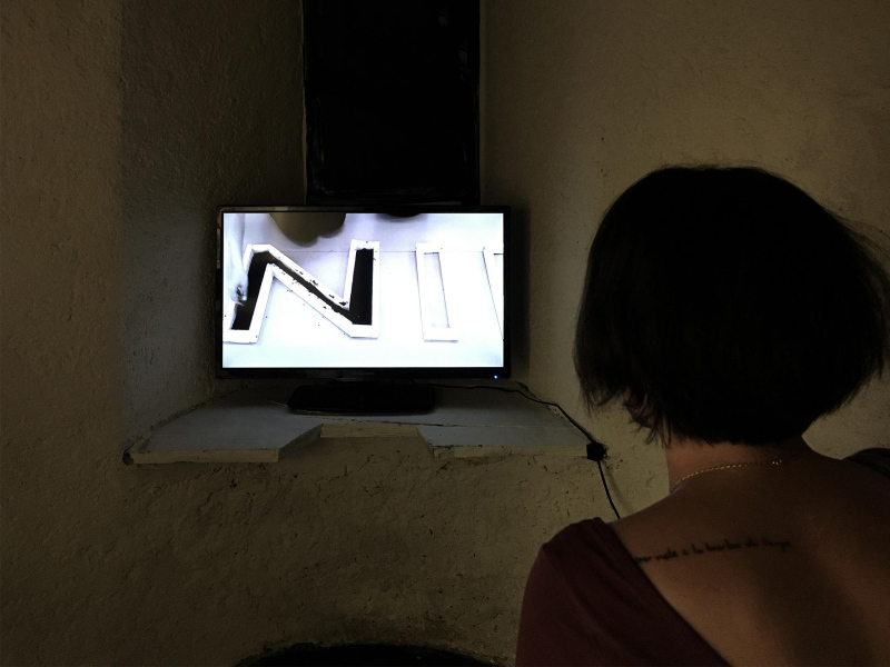 The starting point of DE-PROJECTION is in the association made between Earth, fertile and nourishing, and women from the point of view of the biological capacities of reproduction and lactation, from where a shift in meaning occurs from Nature to « natural ». In this work, breath steps in to annihilate this association, making light of the weight of the construction by the lightness of the process of deconstruction. It is an attempt to erase the gendered projections, normalized and normative, that contain women into biological functions, which assign them fixed roles in society and impose them rules.