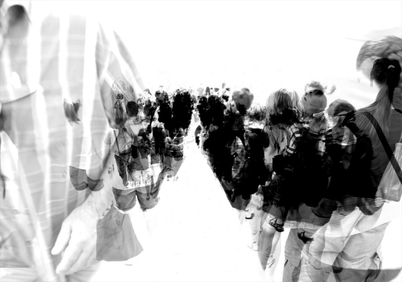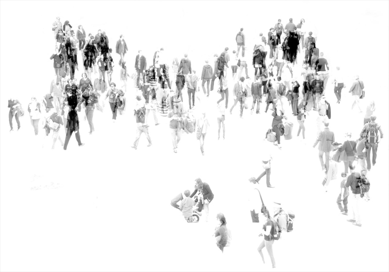 COMPOSINGS (2010/--) est un projet protéiforme d’exploration de l’espace urbain à travers la présence et la mobilité corporelles dans un temps donné. Amorcé en 2010, il est toujours conduit par le même protocole artistique via le médium photographique. Celui-ci associe procédé d’extraction de corps par réfraction de la lumière, quand le soleil est à son zénith et sur des échelles de temps définies par la nature des flux de corps, au procédé d’accumulation de corps par la pluralité des prises de vue jusqu’à la superposition des images. En suivant ce protocole, je compose avec de la coprésence pour (re)construire, à l’image, des espaces, dans un rapport d’inscription/révélation, entendu aussi comme une manipulation de temps. COMPOSINGS est mené dans différentes villes d’Europe et prend, au fil du temps, des formes différentes qui proposent aux spectateurs des modes différents de lecture de l’espace. L’enjeu de ce projet se situe sur un plan politique et social, interrogeant l’agencement contemporain de nos espaces que détermine la recherche d’une fluidité de circulation, résonnant, de par mon point de vue photographique en surélévation, avec celui des dispositifs de vidéosurveillance chargés de capturer le réel par l’image, créant et exploitant des données numériques dans leur fonction de signes. Sur un plan artistique et sensible, ce projet s’ouvre sur la question de nouveaux modes de perception et de compréhension de l’espace dans sa représentation.