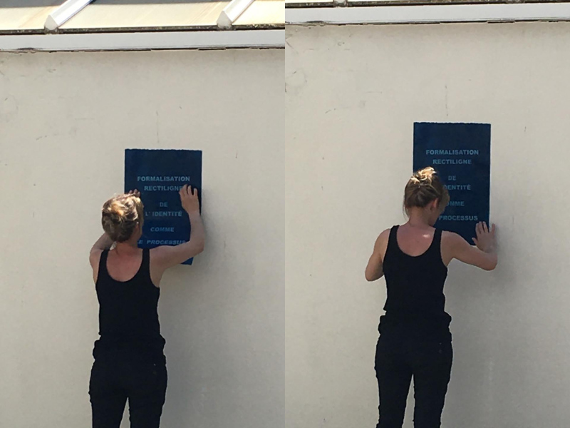La performance VALSE à 3 temps propose une mise en résonance de l'Identité et du Photographique d'un point de vue processuel. Elle se compose de trois temps qui suivent un même protocole : Exposition - Délimitation/Construction - Mémorisation - Arrêt/Révélation - Connexion. Elle fait appel à deux procédés photochimiques dont la temporalité se retrouve définie par l'action du corps.