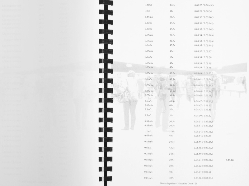 CO-PRESENCES est un dispositif de cartographie sensible de la station de RER Auber à Paris qui propose d’appréhender ce lieu d’intercommunication et de passage à travers la présence de corps, immobiles ou en mouvement, et qui invite à une lecture sensitive de l’espace cartographié. Son élaboration repose sur un protocole artistique qui associe procédé de capture vidéographique des sept espaces constitutifs de la station sur ses trois niveaux, procédés d’analyse et de traduction des flux de circulation de corps à l’image en série de données relatives au rythme de déplacement et à la durée de présence propres à chaque corps filmé, procédés de transformation de ces (corps-)données en matières sonores et procédé de mise en forme de la carte sur iPad par programmation. Faisant appel à l’ouïe et au toucher, ce projet exploite et met en perception de la co-présence aux fins d’une délimitation spatiale de la station Auber. Contact et mouvement des doigts sur l’écran du dispositif génèrent une émission sonore et vibratile dont la fréquence et l’intensité sont définies par la mobilité ou l’immobilité des corps ainsi que par leur localisation dans la station.