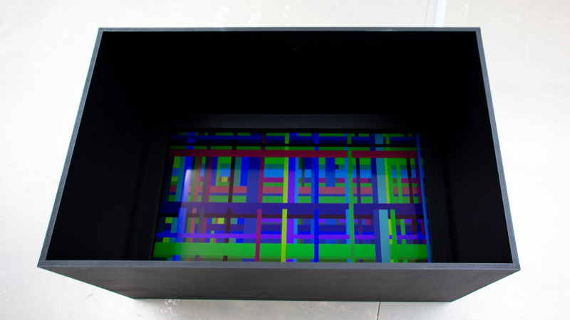 1 vidéo numérique HD, couleur, son stéréo, 0.06.34. Lecture en boucle sur écran plat noir encastré au sol 40''-65''. Edition 2 + 1EA.