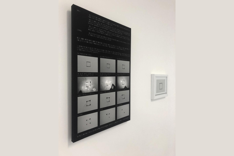 2 compositions photographiques et textuelles, noir&blanc, 40x60cm et 18x24cm. Tirage epson sur toile canvas 350g. Contrecollé sur bois et sous verre. Edition 1.