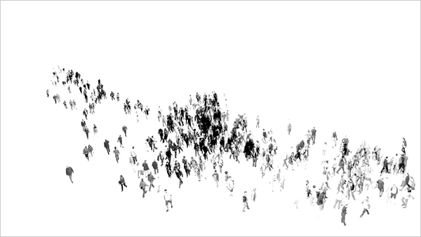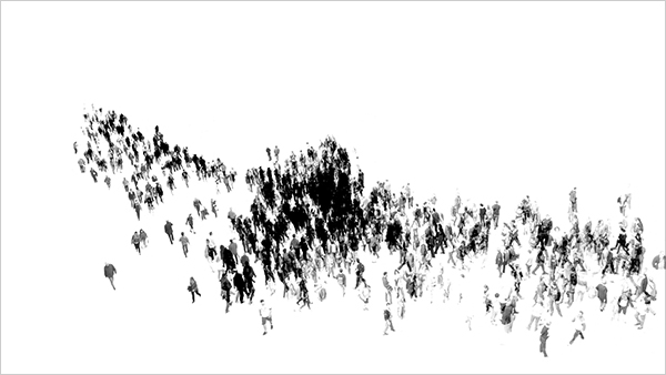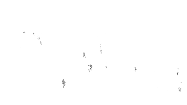 COMPOSINGS III : M_C2 is a video triptych created from one hundred and twenty photographs witch were realized in Malaga (Spain) according a time of photographic observation equivalent to forty five-minutes. Through the introduction of movement, this work shows the progressive construction of an image. Its distribution on three screens by part of fifteen minutes enables to reveal the space at differents moments. The installation of COMPOSINGS III : M_C2 is conceived according to possibilities of mobility around the installation and contemplation of the images to experience the construction in progress by feeling the accumulation of bodies without to exactly see it.