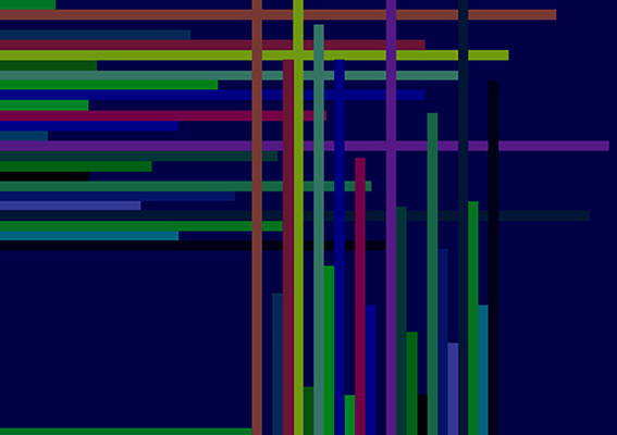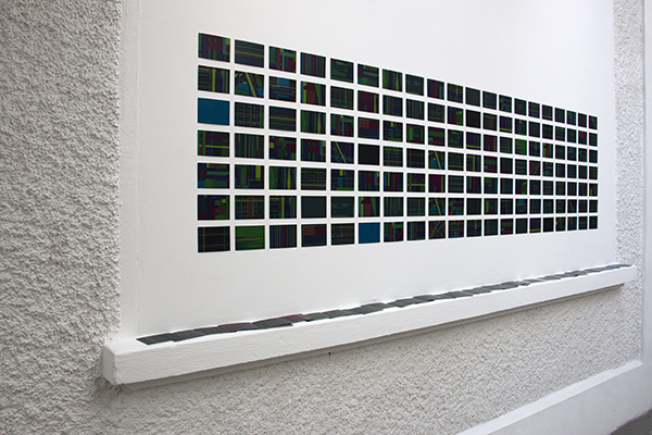 The ID PALETTE series was created from an artistic protocol which is based on an extraction and a translation of my ID document's personal data into color codes, according to a series of mathematical rules. This protocol leads to the formation of my own ID palette which contains twenty-five colors. With these, I compose to signify the plurality and the infinity of Identity in its forms and its spaces. The serial form supports this dimension of multiplicity, a serial both mutable and unlimited in number of edition for a dynamic character and a desacralized material support.
