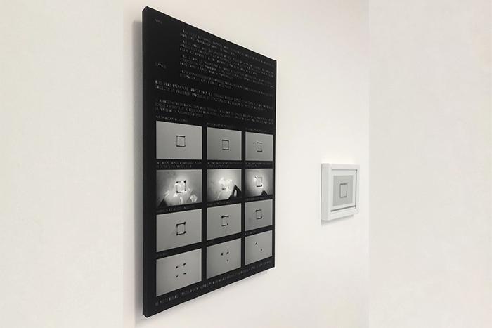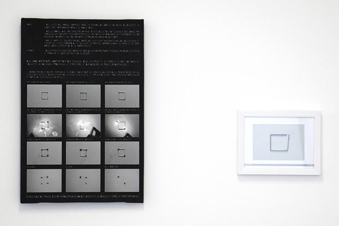 2 photographic and textual compositions, 40x60 cm and 18x24 cm. Pigment inkjet print on canva 350g. Mounted on wood and under glass. Edition 1.