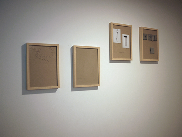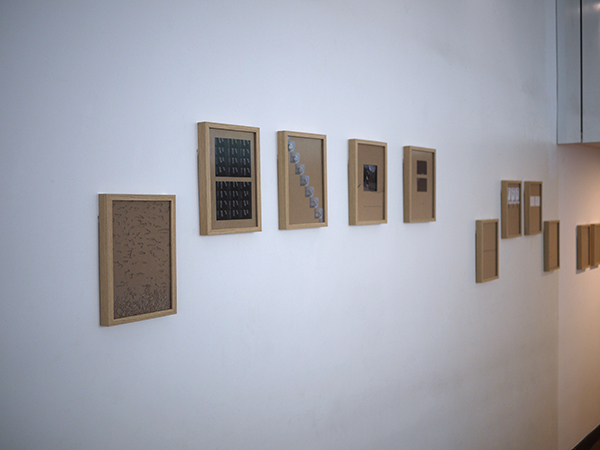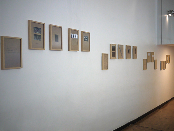 18 compositions photographiques et textuelles 21x29,7 cm, sous verre anti-reflets / techniques mixtes
