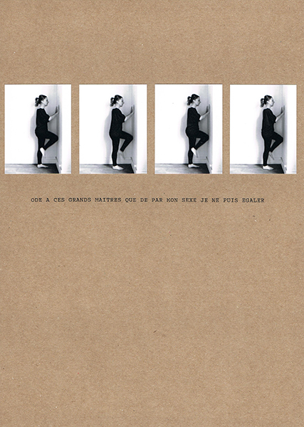 WELL NOW is based on a socio-political observation as for the persistence of a Gender inequality in Art, which especially affects the distribution of the artists’s spaces of visibility according to their biological sexual identity. This observation has taken shape in a notebook, through a series of statistics started in 2016 and bringing out a recurring ratio of 1/3 (female) for 2/3 (male), and was formalized the following year with a series of photographic and textual compositions. WELL NOW uses the plastic form of the photographical report, combining text and image, to attest a posteriori to actions and gestures (initially filmed or photographed) which reflect a succession of feelings and positions faced with the active parameter of Gender in the estimate and the diffusion of the artistic practices, from alienation to rage, from refusal to resistance.