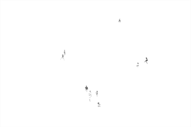 COMPOSINGS (2010/--) is a protean project exploring the urban space through the presence and the mobility of bodies in a delimited time. Begun in 2010, it is still conducted, in all its successive versions, by the same artistic protocol, via the photographic medium. This protocol combines a process of extraction of bodies by refraction of light, at the zenith of the sun and with time scales defined by the type of flows of bodies, with a process of accumulation of bodies by the plurality of my shots and the process of superposition of images. From this protocol, I compose with the co-presence in order to (re)construct spaces in a relation of inscription / revelation, also understood as time manipulation. The issue of COMPOSINGS is situated on a political and social level when I question the contemporary organization of our spaces that the search of a bodies traffic fluidity influences, when my photographic point of view, from the top and directed toward the ground, echoes the point of view of certain surveillance tools which record, with the image, our reality, when I create and exploit data in their signs function. From another angle, artistic and sensitive, COMPOSINGS offers new modes of space perception and understanding.