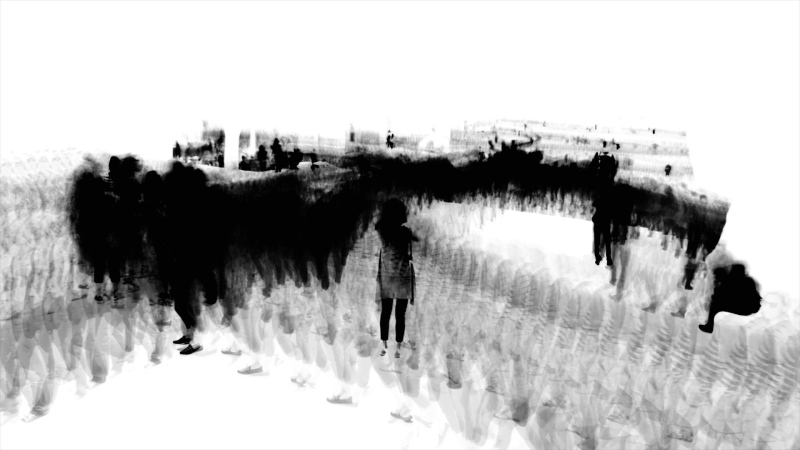 COMPOSINGS (2010/--) is a protean project exploring the urban space through the presence and the mobility of bodies in a delimited time. Begun in 2010, it is still conducted, in all its successive versions, by the same artistic protocol, via the photographic medium. This protocol combines a process of extraction of bodies by refraction of light, at the zenith of the sun and with time scales defined by the type of flows of bodies, with a process of accumulation of bodies by the plurality of my shots and the process of superposition of images. From this protocol, I compose with the co-presence in order to (re)construct spaces in a relation of inscription / revelation, also understood as time manipulation. The issue of COMPOSINGS is situated on a political and social level when I question the contemporary organization of our spaces that the search of a bodies traffic fluidity influences, when my photographic point of view, from the top and directed toward the ground, echoes the point of view of certain surveillance tools which record, with the image, our reality, when I create and exploit data in their signs function. From another angle, artistic and sensitive, COMPOSINGS offers new modes of space perception and understanding.