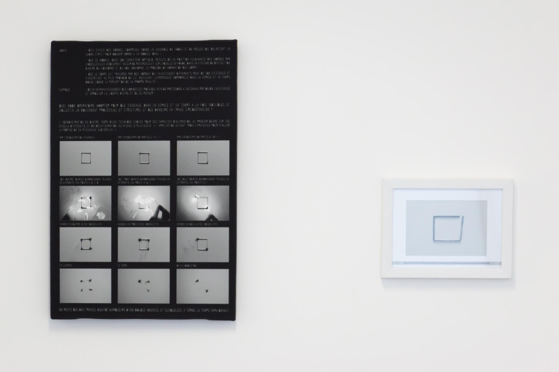2 photographic and textual compositions, black&white, 40x60cm and 18x24cm. Pigment inkjet print on canvas 350g. Mounted on wood and under glass. Edition 1.