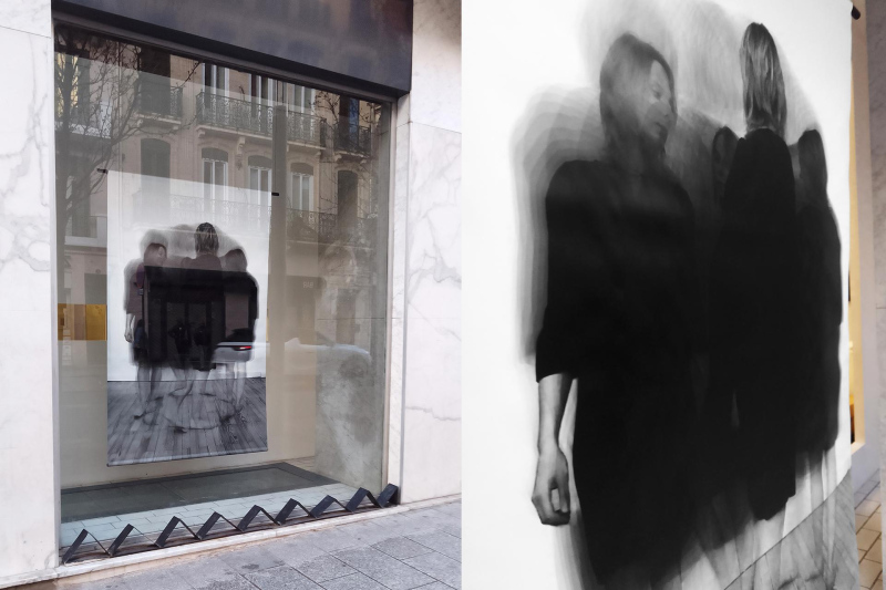 1 digital photograph, black&white, 135x200cm. Pigment inkjet print on opaque banner. Edition 1. Produced with the Grant for Creation AIC of the City of Saint-Etienne.